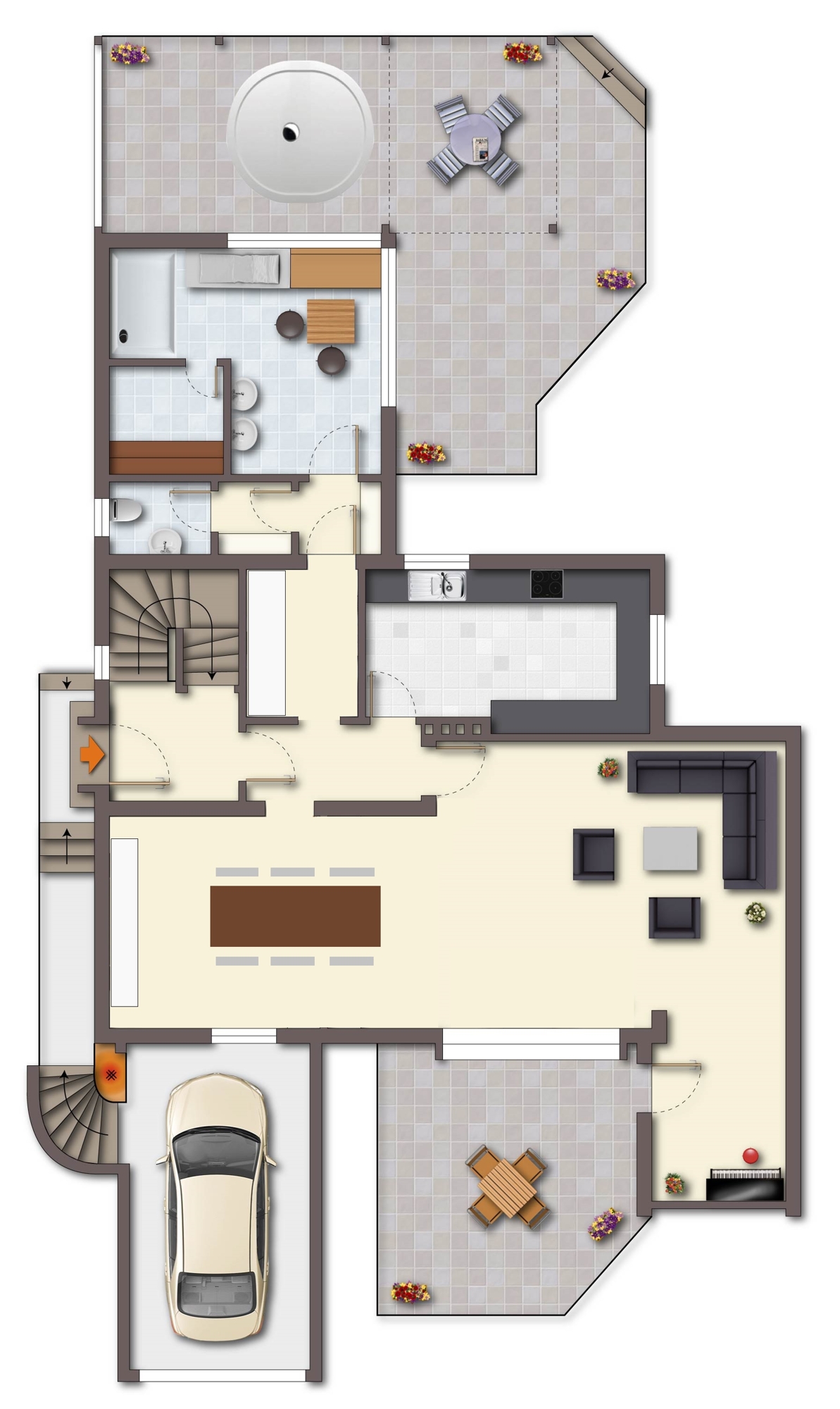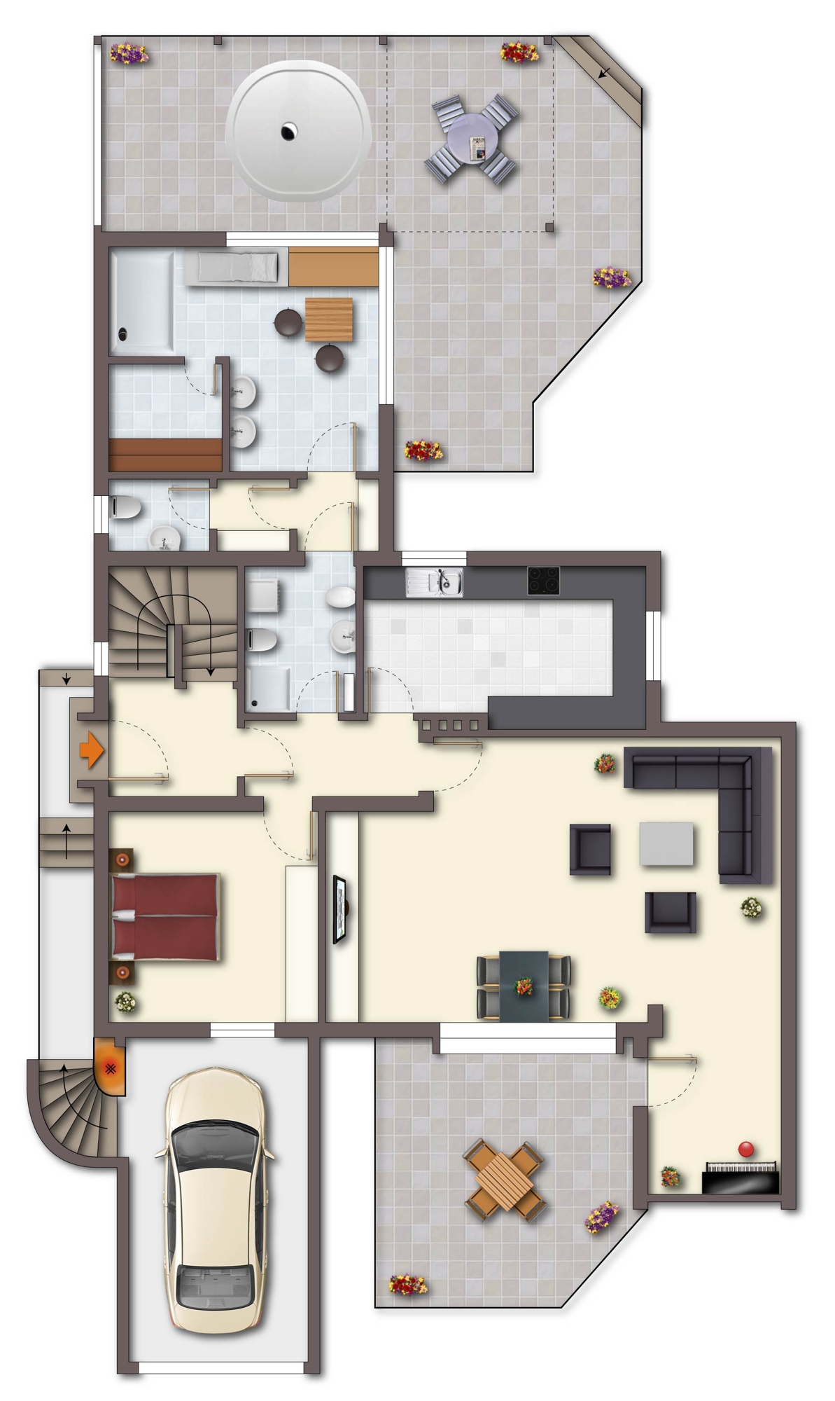 Badausstattung: EG: Tageslichtbad mit Sauna und Dusche, Gäste WC OG: saniertes Tageslichtbad mit begehbarer Dusche